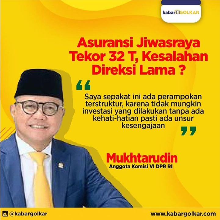 2. Jiwasraya Tekor Rp 32 T, Mukhtarudin: Perampokan Terstruktur Direksi Lama (kabargolkar.com)