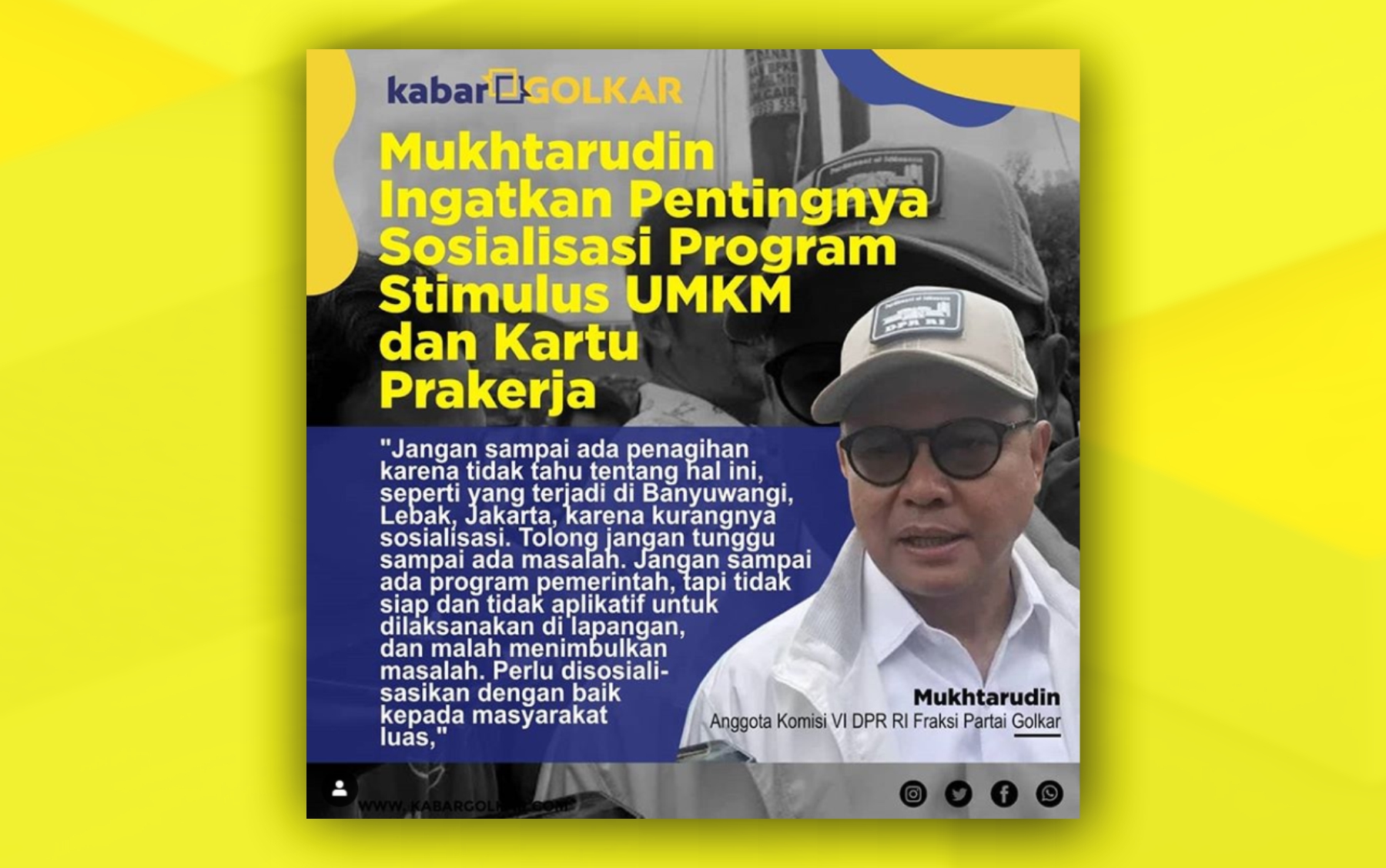 Hal yang sama juga diutarakannya terkait sosialisasi kartu prakerja. Menurut Mukhtarudin, Kemnkop UKM yang juga sebagai stakeholder perogram tersebut harus bergerak berkoordinasi dengan instansi lainnya dalam memberikan kejelasan tentang program tersebut di masyarakat. Jangan sampai ada pernyataan berbeda yang menimbulkan kebingungan sehingga menjadi komoditas politik di masyarakat.