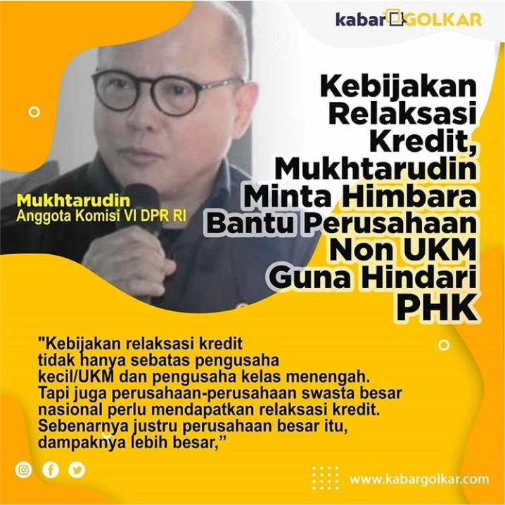 “Kebijakan relaksasi kredit tidak hanya sebatas pengusaha kecil/UKM dan pengusaha kelas menengah. Tapi juga perusahaan-perusahaan swasta besar nasional perlu mendapatkan relaksasi kredit. Sebenarnya justru perusahaan besar itu, dampaknya lebih besar,”