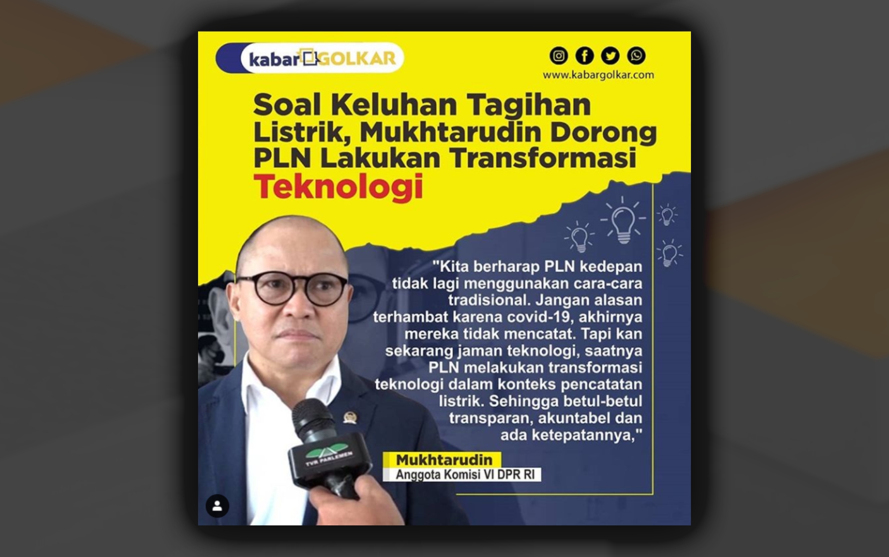“Kita berharap PLN kedepan tidak lagi menggunakan cara-cara tradisional. Jangan alasan terhambat karena covid-19, akhirnya mereka tidak mencatat. Tapi kan sekarang jaman teknologi, saatnya PLN melakukan transformasi teknologi dalam konteks pencatatan listrik. Sehingga betul-betul transparan, akuntabel dan ada ketepatannya,”
