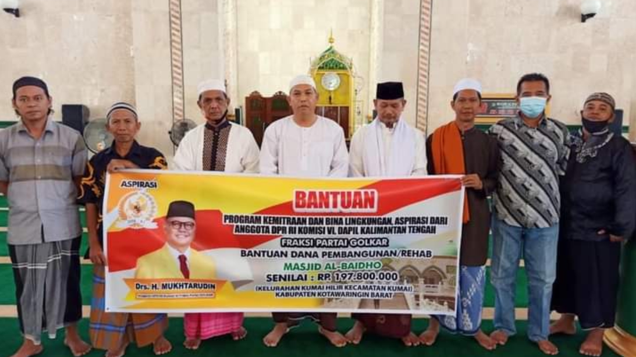 Program kemitraan dan bina lingkungan aspirasi dari Mukhtarudin. Anggota DPR RI Komisi VI Daerah pemilihan Kalimantan Tengah, membantu dua Masjid di Kecamatan Kumai Kabupaten Kotawaringin Barat, Sabtu (9/1/2021).
